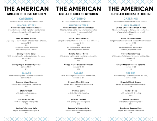 Print marketing pieces for the American Grilled Cheese Kitchen.